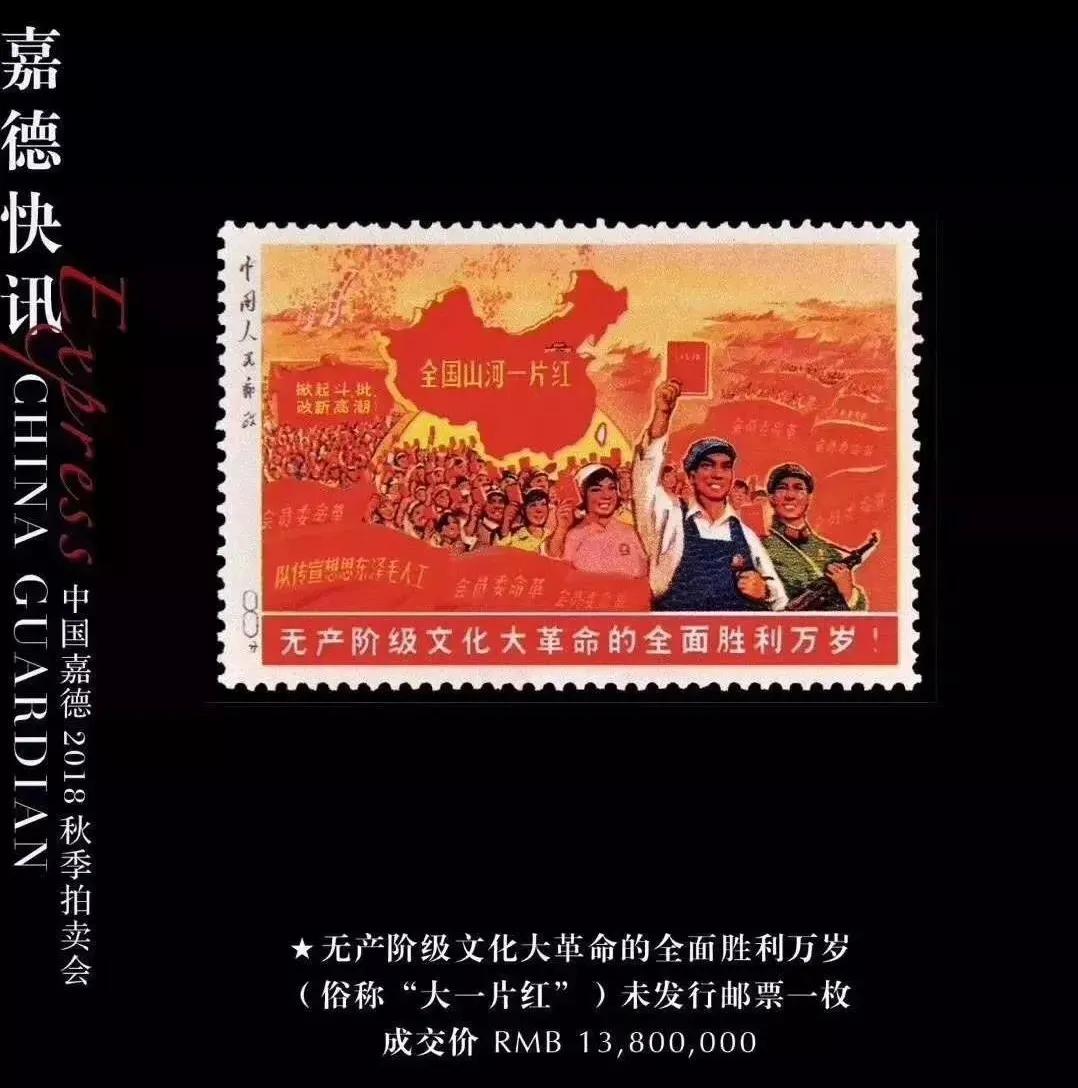 在2018年11月22日进行的中国嘉德2018年秋拍暨25周年庆典拍卖“邮品”专场拍卖中,一张俗称“大一片红”的未发行邮票最终以1380万元天价成交,成为全世界最贵邮票。 特别要注意的是,市场上有些定制的邮品,数量很少,但却毫无投资价值。