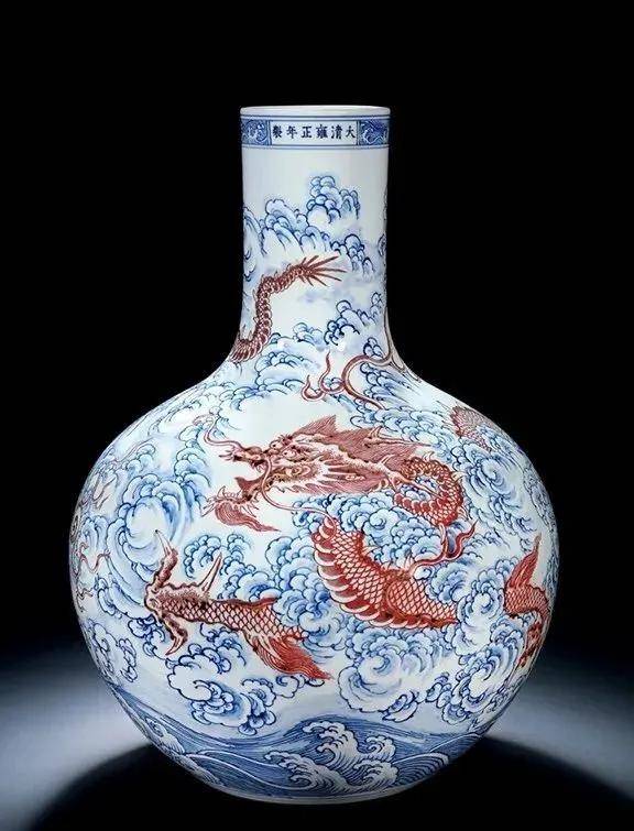 ▲2019北京保利春拍 清雍正 御制青花釉里红云海腾龙大天球瓶,1。472亿元