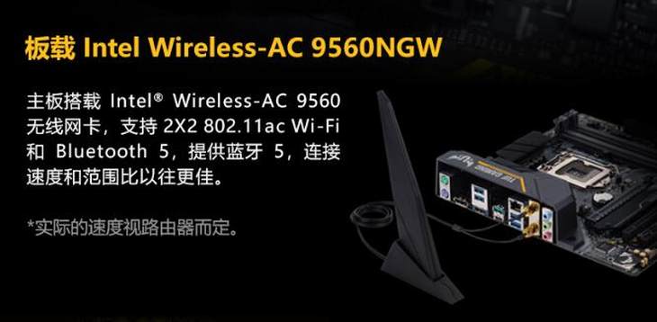 该主板板载Intel Wireless-AC 9560无线ac Wi-Fi和Bluetooth 5,提供更快的无线传输体验。的SafeSlot高强度显卡插槽,一体注塑,金属骨架,焊点增强,可为显卡提供优异的支撑和防护能力。ProCool高强度电源接口采用特质实心结构,通过减少阻抗进而降低工作温度,以实现延长使用寿命。特别是,该主板在音效方面特别拥有DTS游戏音效定制技术,能够为立体声耳机提供多声道环绕虚拟化,玩家可根据当下主流的MOBA类、MMO类和FPS类游戏类型,将音效设为对应的上空模式、音景模式和战术模式,提供更加优质的游戏音效体验。更精心设计了AURA RGB灯效模组,并板载AURA SYNC灯带接针,支持AURA SYNC神光同步技术,可与其他设备实现灯效一体化,打造炫酷电竞氛围。